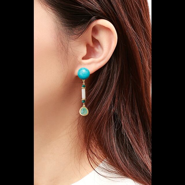 #夏 #春 #エレガント #アマゾナイト #幸運をもたらす #希望をもたらす #迷いを取り去る #フォーマル #天然石 #マロン #変形 #緑その他 #緑 #パーツ #アクリル #真鍮 #丸 #ターコイズ #ブルー #イヤリング #白その他 #白 #中間パーツ