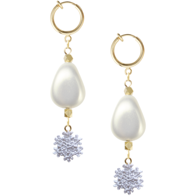 #イヤリング #金 #フープ #その他 #ゴールド #フォーマル #パール #メタルパーツ #変形 #オフホワイト #白 #中間パーツ #冬 #スウィート #小ぶり #チャーム #タティングレース #雪の結晶 #白その他 #パーツ